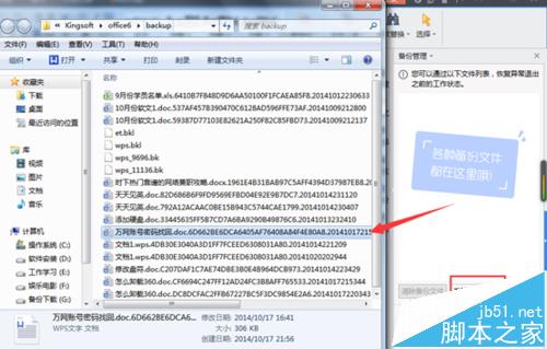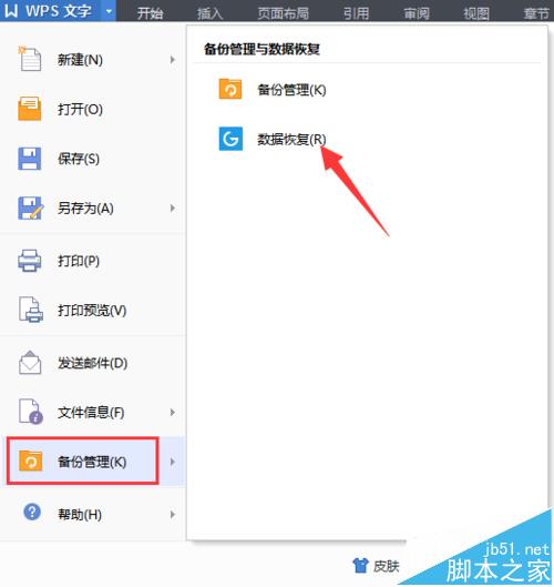2、点击打开,wps菜单选项,如下图找到”备份管理“---”备份管理“功能