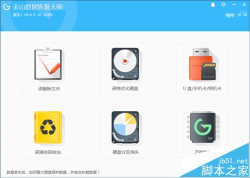 2、打开数据还原,也就是金山数据恢复大师。使用方法很简单。