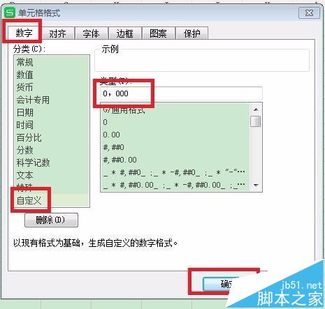 2、在弹出的对话框选择数字——自定义——输入0,000,最后确定。