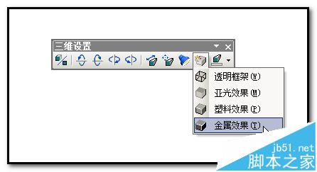3、点选“三维效果样式”后,弹出的菜单中点“三维设置”;弹出“三维设置”工具条,点“表面效果”图标;