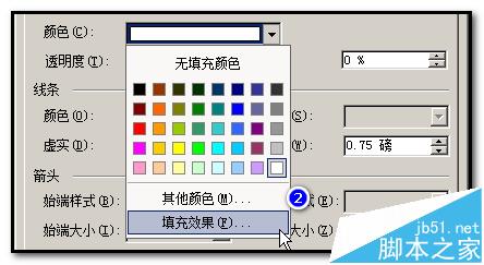 6、双击图形,弹出“设置自选图形格式”操作框;在“填充颜色”右侧的小三角形这里点下;弹出的菜单中点选“填充效果”;