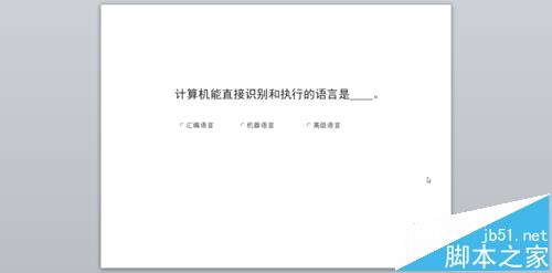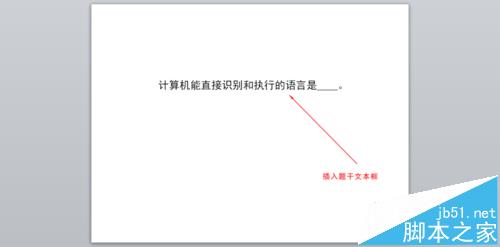 2、在幻灯片插入题干文本框,输入“计算机能直接识别并运行的语言是()。”
