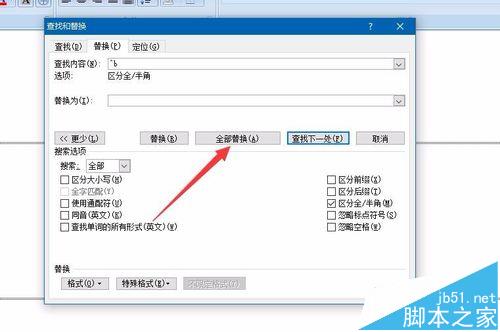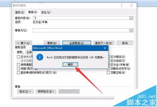 7、选择全部替换(如果你想先看下效果如何,也可以先点击左边的替换,这样的话就没有整篇文档全部替换了)