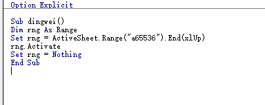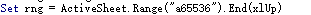 Set rng = ActiveSheet.Range("a65536").End(xlUp)
