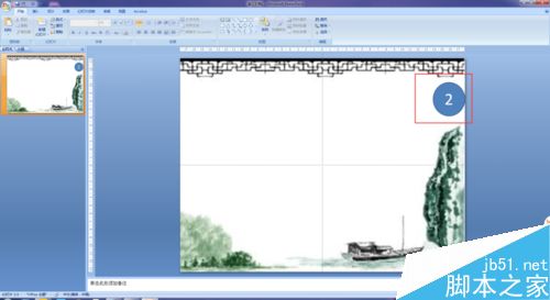 5、我们在做PPT时,一般都会分好几个章节,所以在板式上也会略有调整,我现在夸张一下,在下面两个板式上大大的写上1和2。然后退出母版。