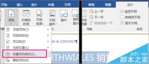 5、若要更改编号格式,请在“设计”选项卡(在页眉和页脚工具下)上,单击“页码”>“设置页码格式”。