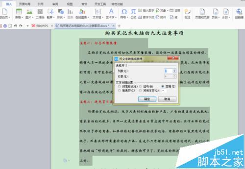 6、点击“文本转换成表格”命令选项后,会弹出新的命令窗格,如图所示;