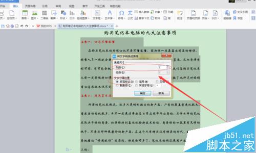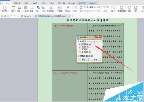7、在新的命令窗格中,找到“表格尺寸——列数”和“文字分隔位置”,设置相应列数和文字分隔方法,(笔者根据实际文本需要设置列数为2,文字分隔位置采用段落标记),如图所示;