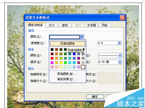 5、双击该文本框,调出设置文本框格式对话框,在该对话框中选择无颜色填充。