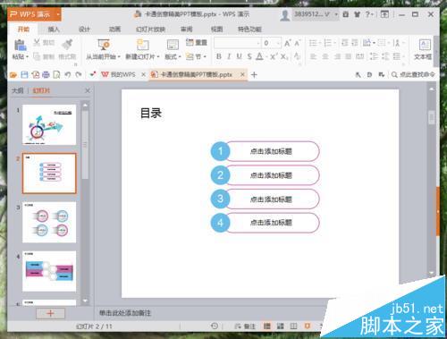 1、在计算机桌面的Wps演示图标上双击鼠标左键,将其打开运行。在运行的Wps演示程序中,打开需要编辑或者修改的PPT文稿。如图所示;