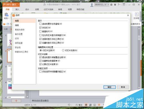 4、点击选项命令选项 后,这个时候会打开Wps演示的“选项”对话框。如图所示;