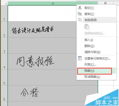 1、选择图片所在的列,然后右击选择隐藏: