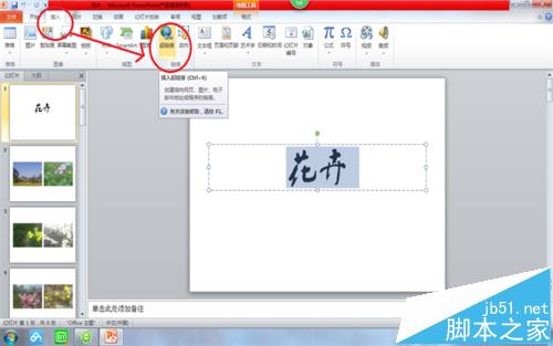 2、选中需要插入超链接的内容,例如我们选中”花卉“两个字,并给它插入超链接。