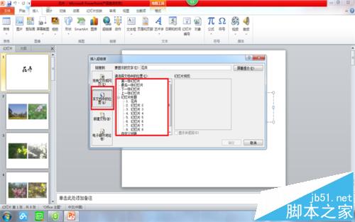 4、会出现一个窗口,在左侧的链接到选择”本文档中的位置“,然后会出现在PPT中的每一张幻灯片。