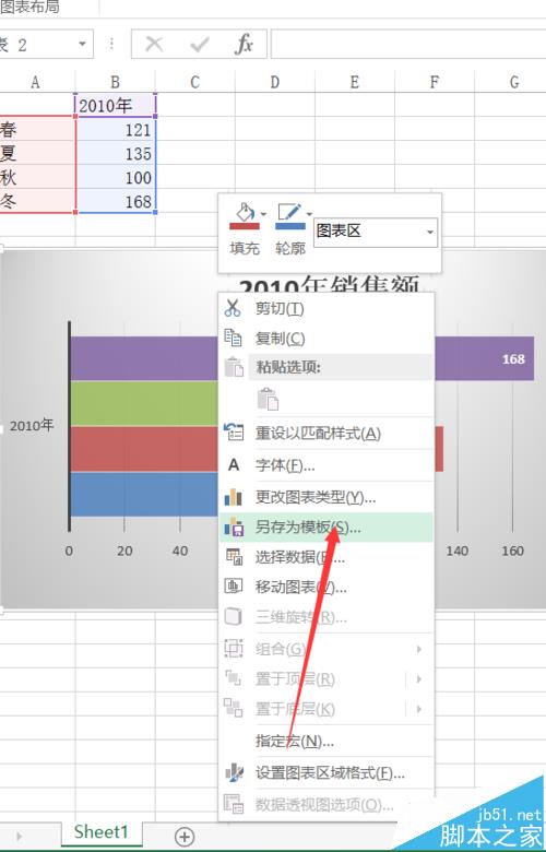 4、在图表上右击,选择另存为模板。
