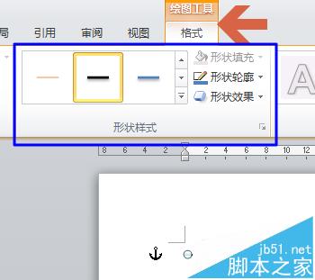 6、双击画出的箭头后,会打开格式选项卡,点击图中所示区域中的功能按钮可以调整箭头的大小、颜色等。