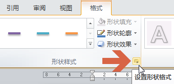 7、点击格式选项卡中图中所示的按钮,可打开“设置形状格式”窗口,从而对箭头进行更细致的设置。