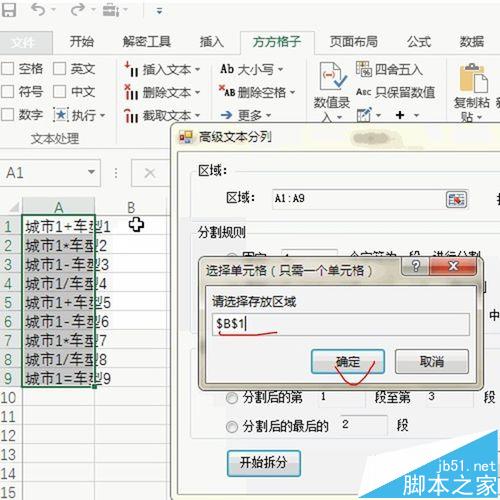2、然后选择方方格子插件中的高级分列,如下图所示: