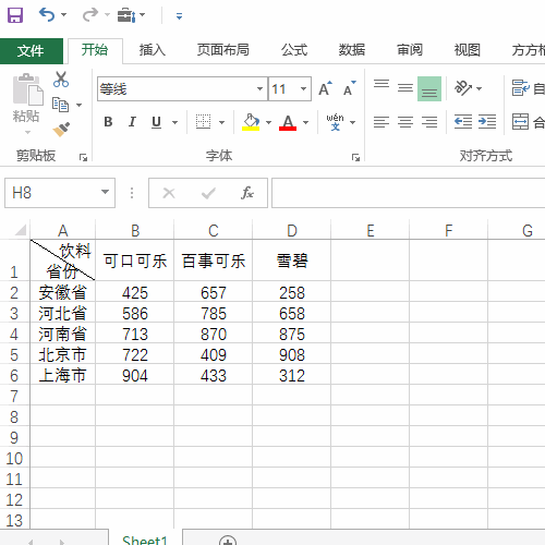 1、首先打开数据表格,要计算各种饮料的省份总和,也就是列上的和,如下图所示: