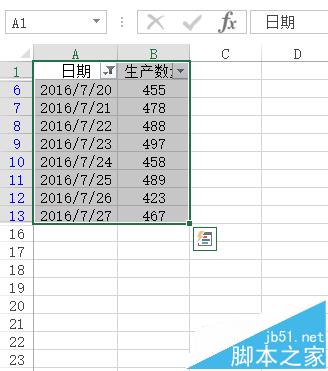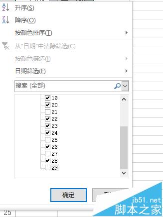 8、在日期的筛选下部有表中的各个日期,把不要的日期不要选择勾选,(这里我选择去掉17,21,25,27,29号的生产数据)即可随机筛选,然后点击“确定”后。筛选效果如下: