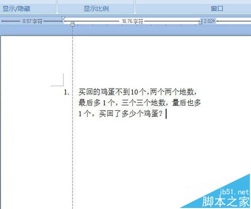 6、按住shift+Enter键,同段落换行,空出需要的空间。然后按下Enter键,编号2出现,即可进入下一题的输入。