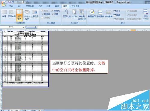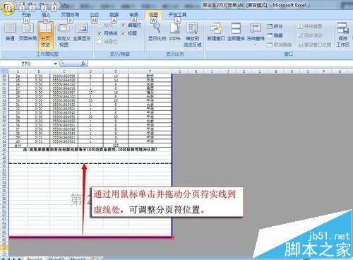 2、通过用鼠标单击并拖动分页符实线到虚线处,可调整分页符位置。