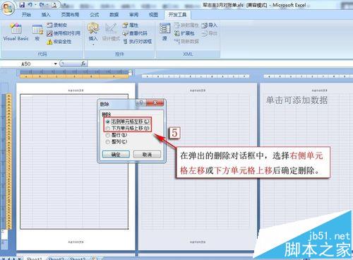 3、在弹出的删除对话框中,选择右侧单元格左移或下方单元格上移后确定删除。(请勿选择正行、整列,以免删除到数据)