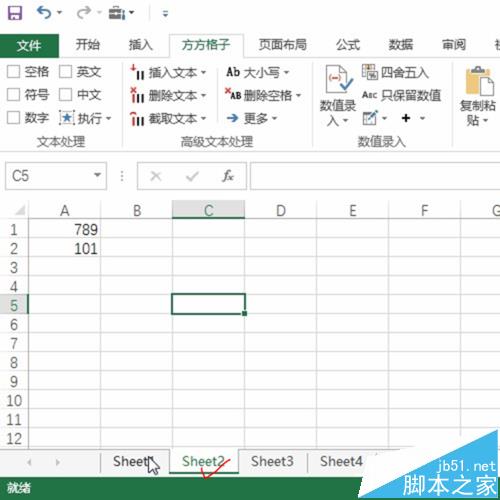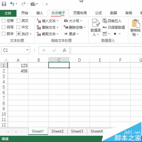 2、接着我们定位到sheet1中,选择方方格子插件,如下图所示: