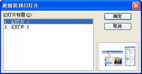 3、在出现的“超链接到幻灯片”窗口,选择你需要链接到的幻灯片,然后确定,完成一条目录的超链接,如图: