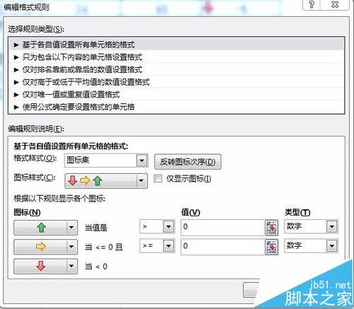 5、修改图标的条件值,当大于0时,显示向上箭头,等于0时,显示向右箭头,小于0时,显示向下箭头。