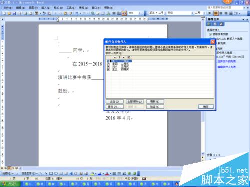 6、点击预览信函——合并邮件。即可看到完成的效果。