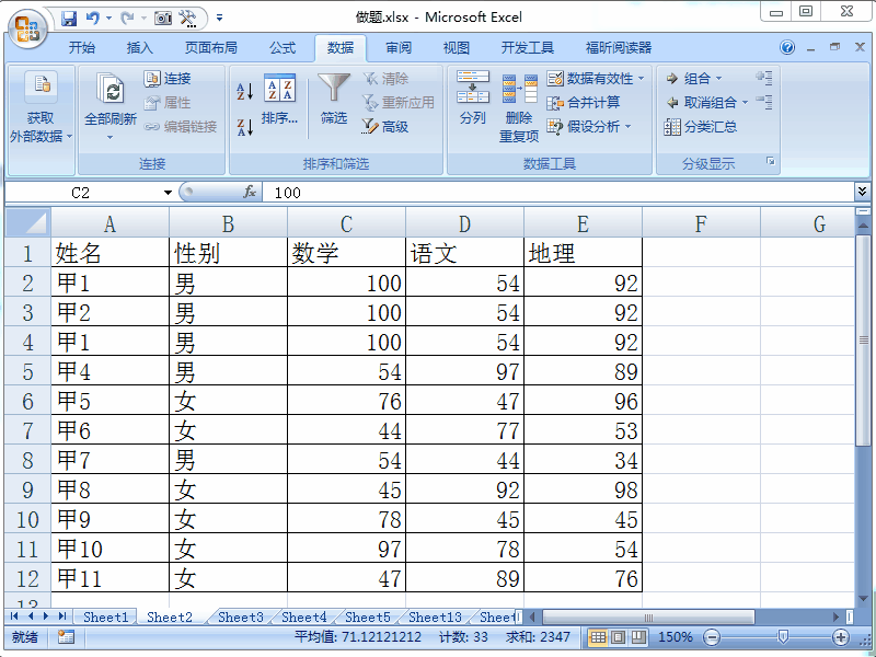 1、选中要筛选的数据,然后依次点击“数据”“数据有效性”“整数”“介于”60-100。然后点击确定,效果如下。说明一下:这里代表选中的单元格中必须满足数值在60-100之间,否则认定为无效数据。