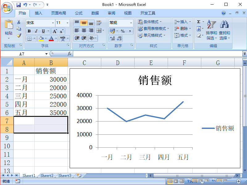 7、此时我们的制作已经完成了,下面开始验证。如图,首先添加7月份的数据,发现图表中增加了7月份的图像,然后我们删除,6/7月的数据,发现图表中的图像也没有了6/7月份的图像了。