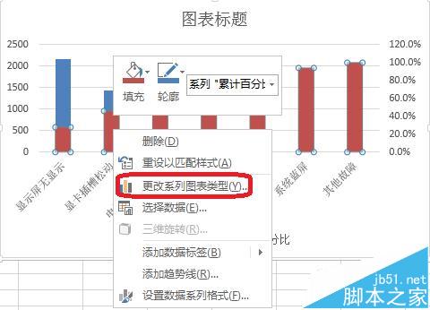 3、右击——更改系列数据图表类型——累计百分比(折线图)。