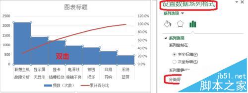 2、点击图表工具(格式)——系列“累计百分比”——设置所选内容格式——次坐标轴。