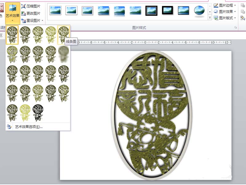 5、执行格式-艺术效果命令,选择线条图选项,当然这个地方可以根据自己的喜好进行设置。