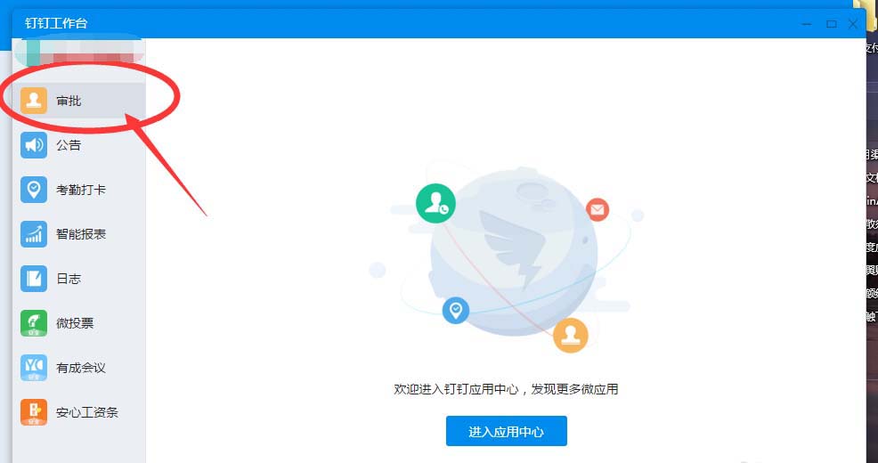3、点击“工作”台之后,弹出工作台——点击“审批”,如下图: