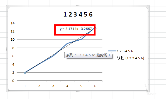 6、确定之后可以看到出现一条拟合曲线以及公式,则斜率为2.1714