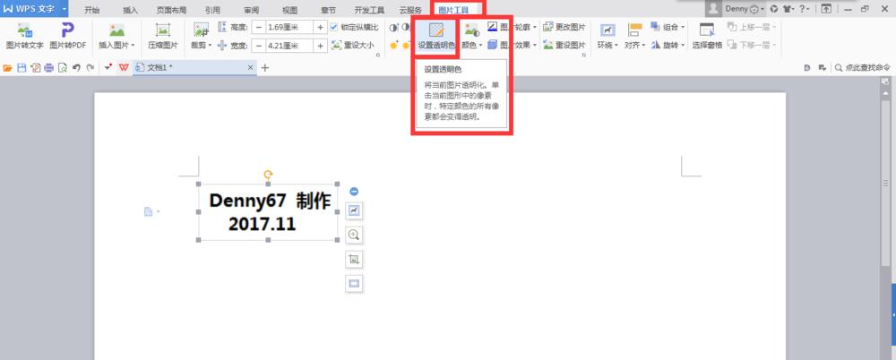 5、单击“图片工具”中的“设置透明色”,鼠标变为另一种图案。