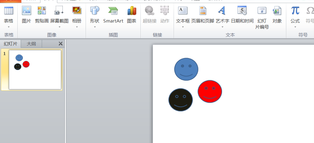 3、另外复制两个笑脸。然后,设置颜色,一个为红色,另一个为黑色。