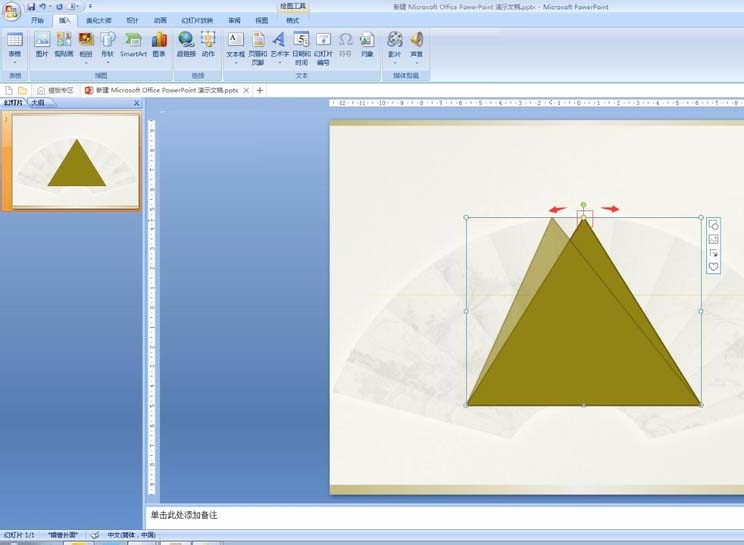 PPT文档中怎么通过合并形状制作震憾三角形效果?