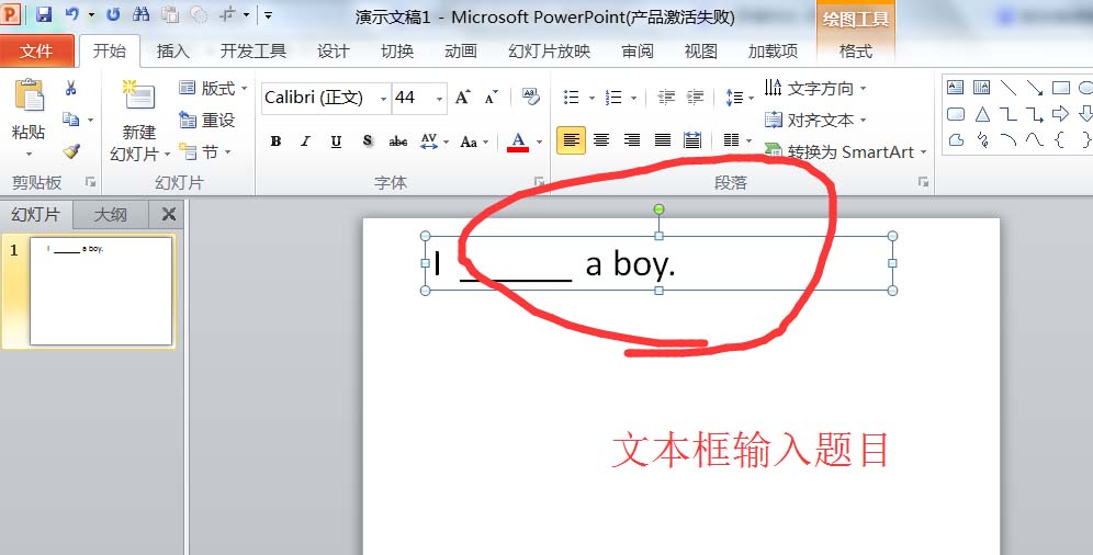 1、创建一个新的PPT幻灯片。接着选择一个文本框,在文本框中把题目输入进去。题目的字体尽量大一些。