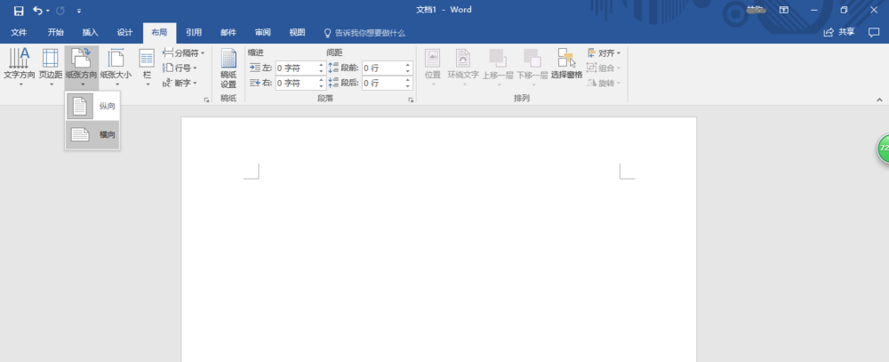 4、点击"纸张方向"向下箭头,选择"横向"。