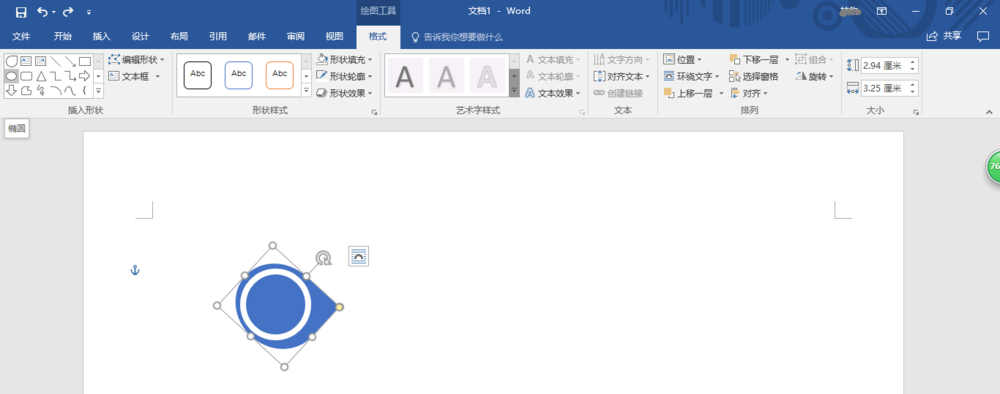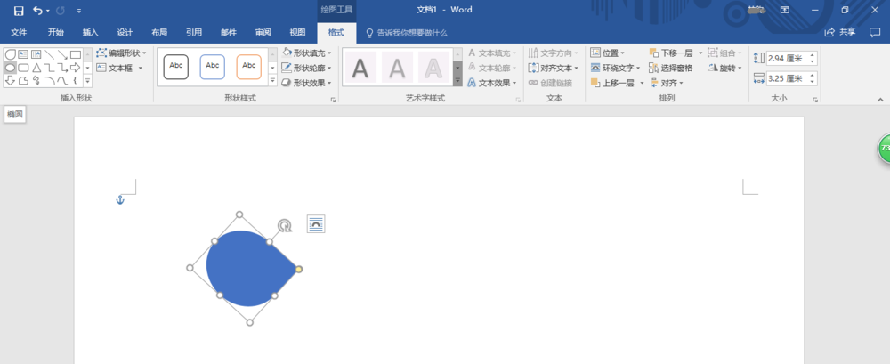 8、点击"绘图工具→格式→插入形状"功能区,选择"椭圆"。