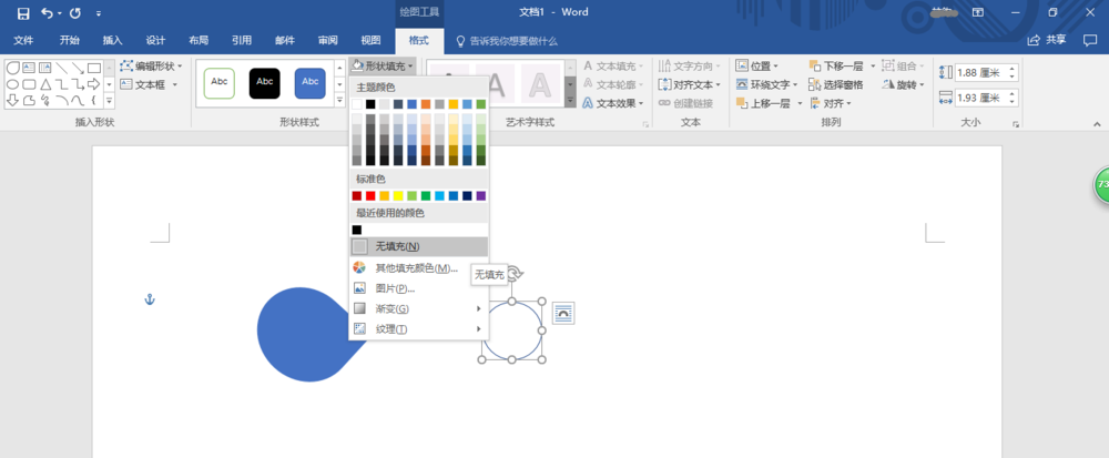 9、点击"绘图工具→格式→形状样式"功能区,选择"形状填充→无填充"。