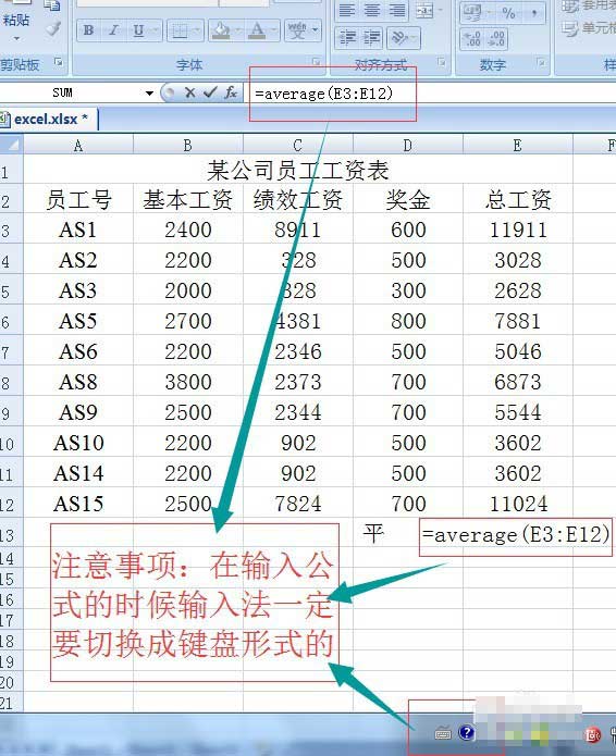 3、注意事项:在输入公式的时候输入法一定要切换成键盘形式的。