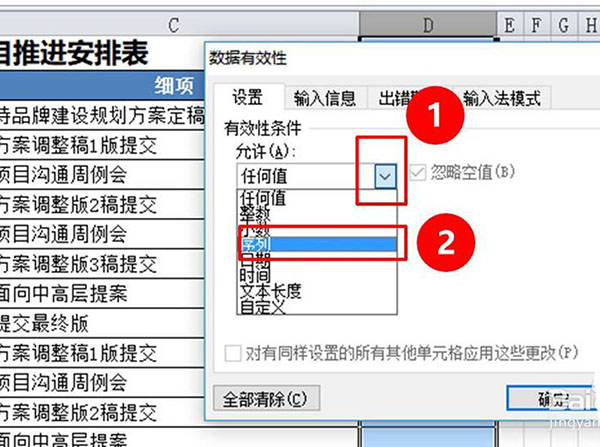 5、在数据有效性的设置窗口中找到图示1的图形并点击选择,然后在下拉列表中选择序列。