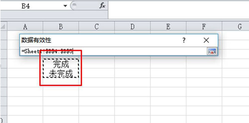 7、这时再回到第二个工作表,框选刚才输入的“完成”和“未完成”,并点击Enter键。