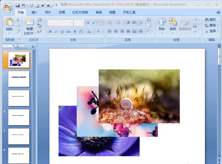 1、下面是示例幻灯片,这张幻灯片中插入了三张图片(如图)。
