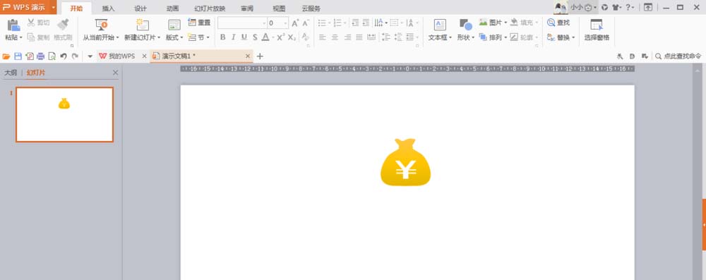 5、这时候文稿上只剩下钱袋了,绘制工作就完成了。
